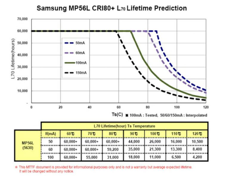 LED芯片的實際工作結點溫度越高,超出芯片的最大工作結溫時,壽命將急速下降。