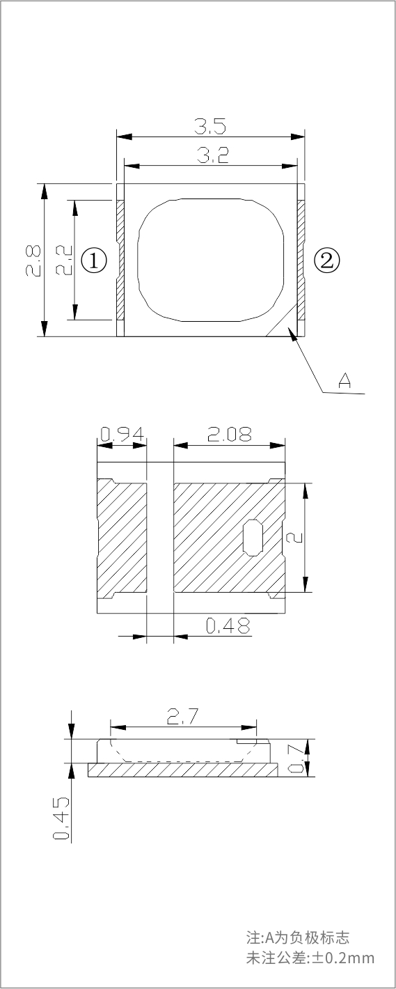 ? 帶熱沉薄型支架,垂直散熱結(jié)構(gòu),可靠性高,光量子通量效率高,性價比高